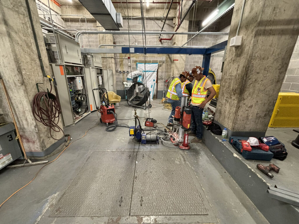 FABRICATION AND INSTALLATION OF A GUARDRAIL SYSTEM AT THE ELEVATOR MACHINE ROOM OF THE ATT TOWER IN DOWNTOWN SAN ANTONIO. COORDINATION THROUGH HC BECK FOR ENGINEERING OF THE GUARDRAILING SYSTEM TO PROTECT MAINTENANCE CREWS FROM POTENTIAL FALL HAZARD WHEN REPLCAING ELEVATOR EQUIPMENT