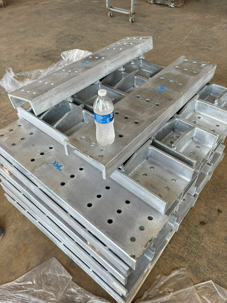FABRICATION OF MC CHANNELS TO SUPPORT CANTILEVERED ALUMINUM AWNINGS, GALVANIZED MATERIALS, UTILIZATION OF VOORTMAN BEAM LINE FOR CONSISTENCY OF HOLE LOCATIONS AND ACCURACY