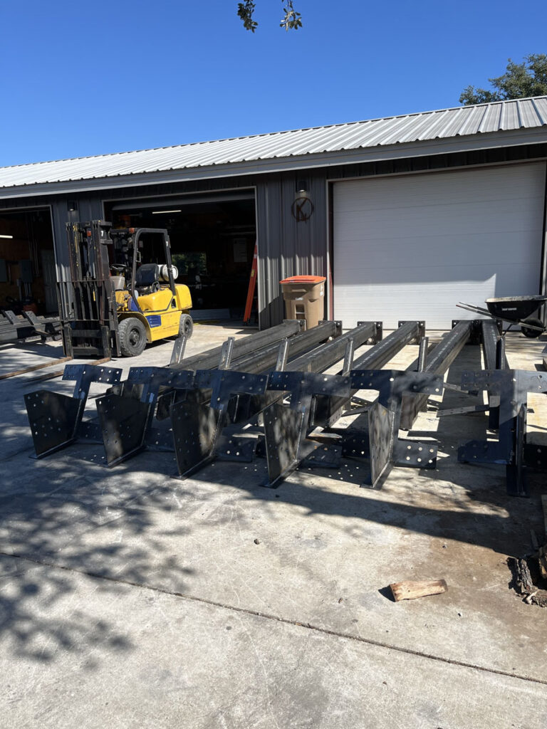FABRICATION OF STEEL COLUMNS AND BENT PLATE BRACKETS FOR TIMBER FRAMING COMPONENTS OF AN EXHIBIT FOR THE ZOO, ALL METALS GALVANIZED FINISH.